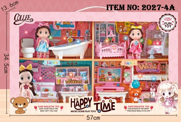 2027-4A HỘP NỘI THẤT NHÀ 4 PHÒNG (2 PHÒNG NGỦ, NHÀ BẾP, NHÀ TẮM) + 3C BÉ CHIBI
