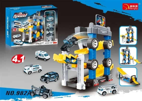 982A HỘP ĐƯỜNG RAY BÃI ĐẬU XE + 6C XE HƠI (CỨU HỎA, CỨU THƯƠNG, CẢNH SÁT)